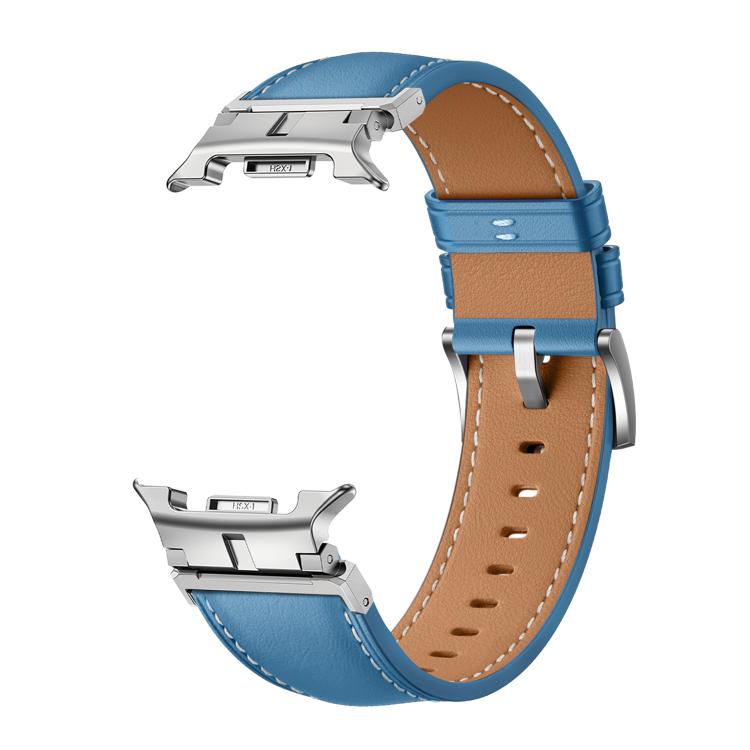 Correa de cuero genuino con conector de cabeza de metal clásico para Samsung Galaxy Watch8/Watch8 (azul plateado)