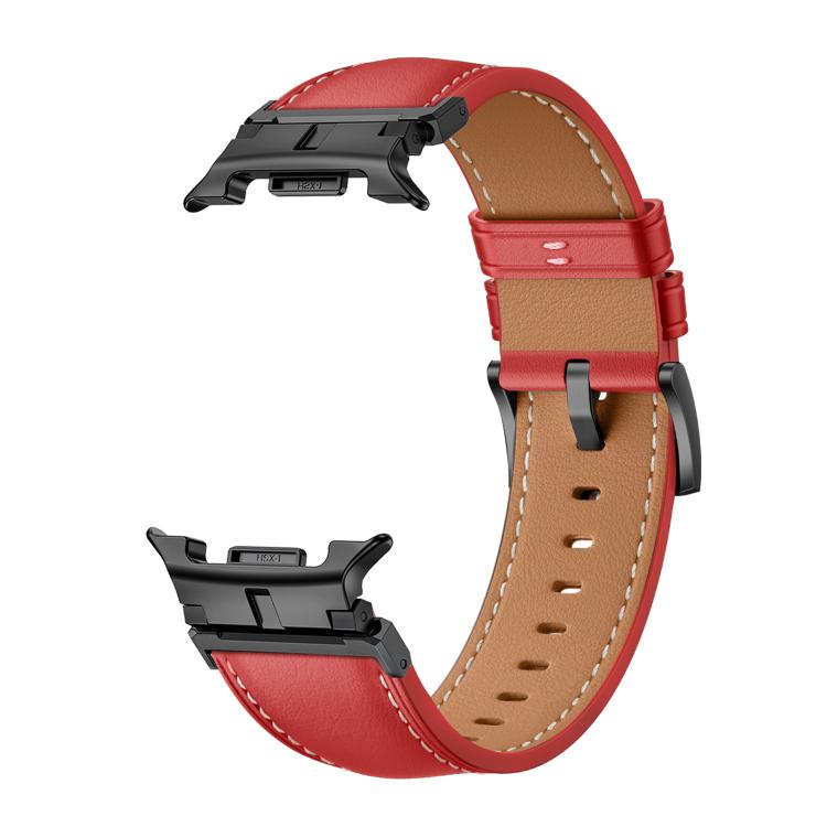 Correa de cuero genuino con conector de cabeza de metal clásico para Samsung Galaxy Watch8/Watch8 (rojo y negro)