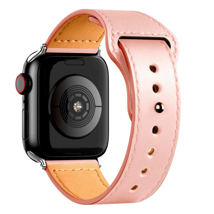 Correa de cuero genuino con hebilla inversa para Apple Watch de 42 mm, 41 mm, 40 mm y 38 mm (rosa)