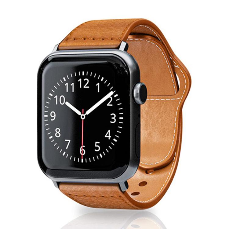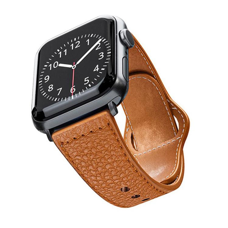 Correa de cuero genuino Litchi con hebilla inversa para Apple Watch de 42 mm, 41 mm, 40 mm y 38 mm (marrón)