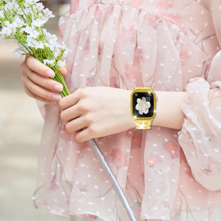 Correa de metal con diamantes brillantes y estuche para Apple Watch Series 38 mm xDfind (dorado)