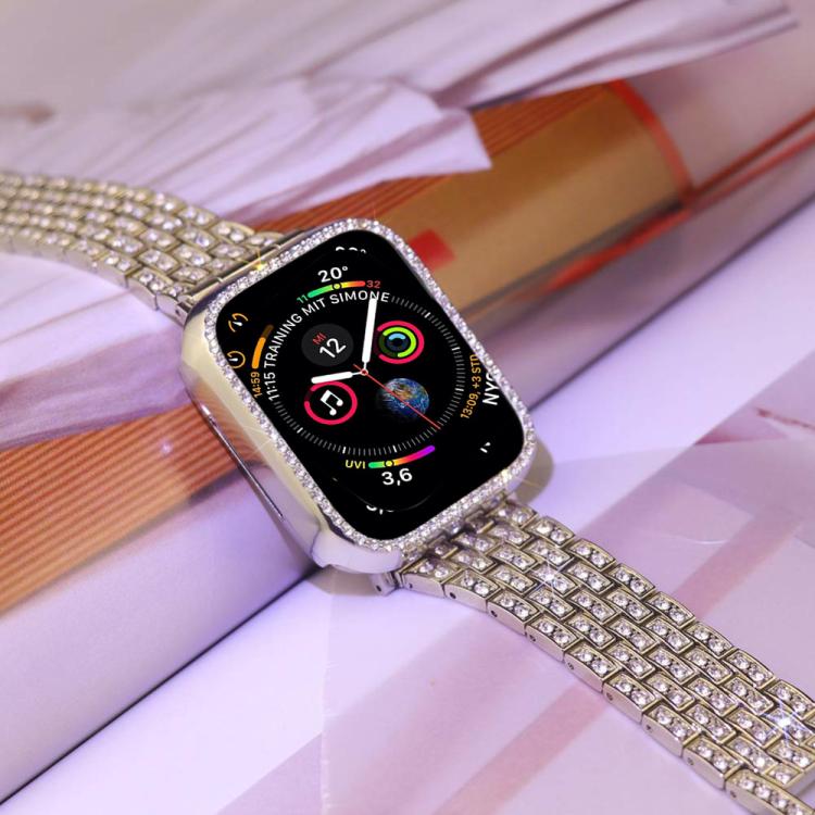 Correa de metal con diamantes brillantes y estuche para Apple Watch Series 45 mm xDfind (plateada)