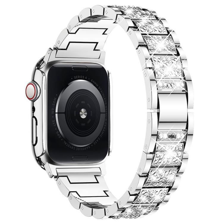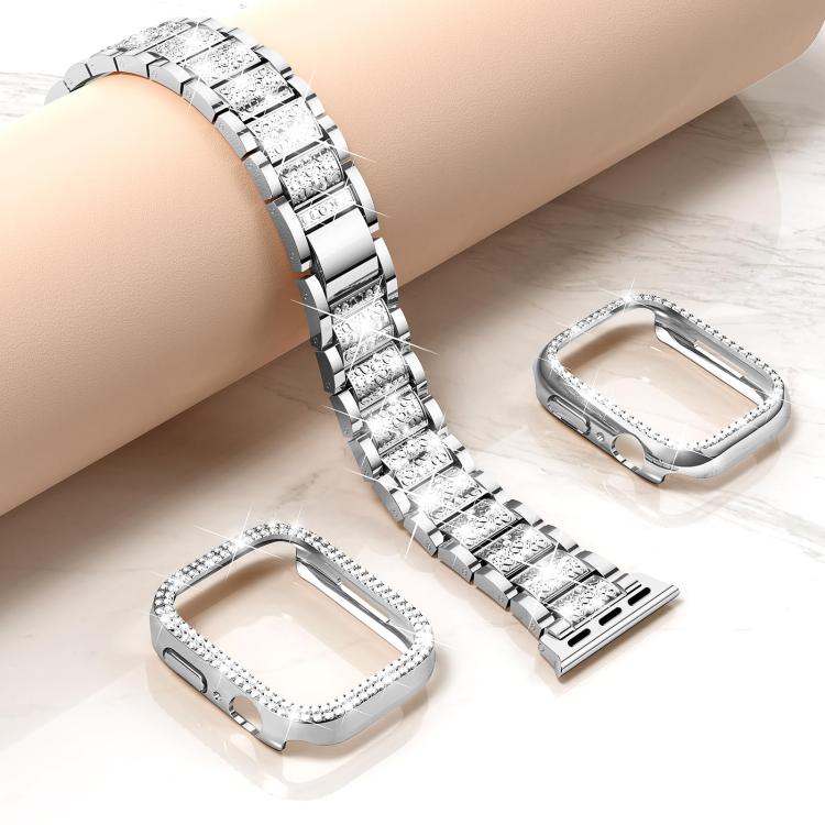 Correa de metal con diamantes y estuche para Apple Watch Series 38 mm xDfind (plateada)