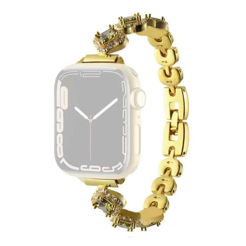 Correa de metal con diamantes y trébol de cuatro hojas para Apple Watch de 42, 44, 45, 46 y 49 mm (dorada)