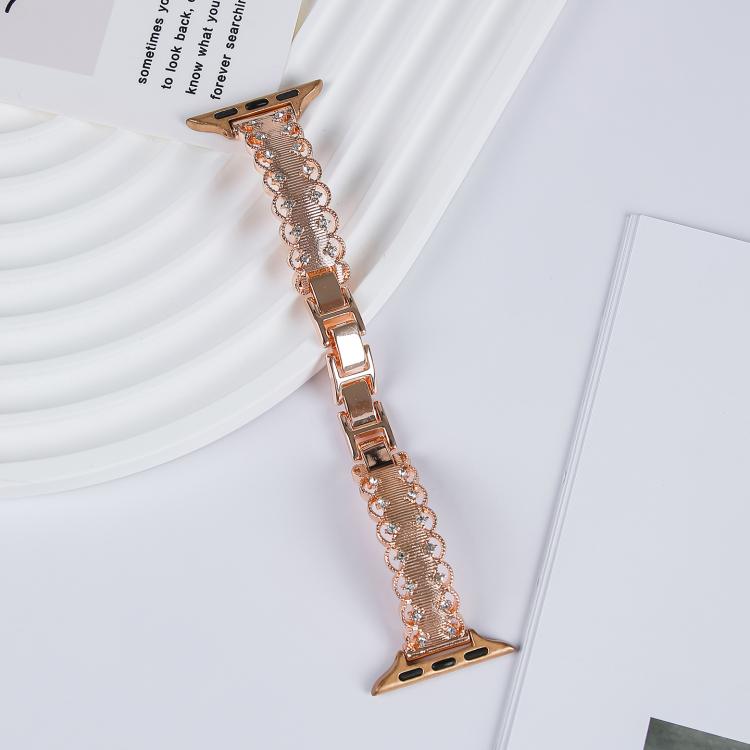 Correa de metal de aleación de diamante con borde de encaje para Apple Watch de 42 mm, 41 mm, 40 mm y 38 mm (oro rosa)