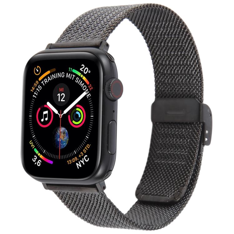 Correa de metal milanesa gruesa con relieve y hebilla integrada para Apple Watch de 42 mm, 41 mm, 40 mm y 38 mm (negra)