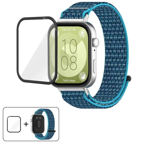 Correa de nailon con cierre de velcro y película curva 3D para Huawei Watch Fit 4 (azul marino)