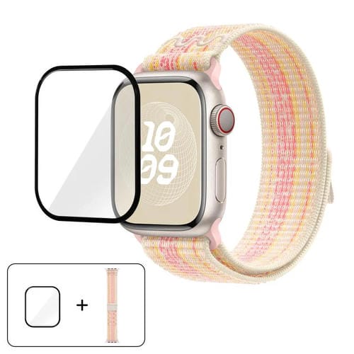 Correa de nailon con película curva 3D para Apple Watch Series 44 mm (rosa estrella)