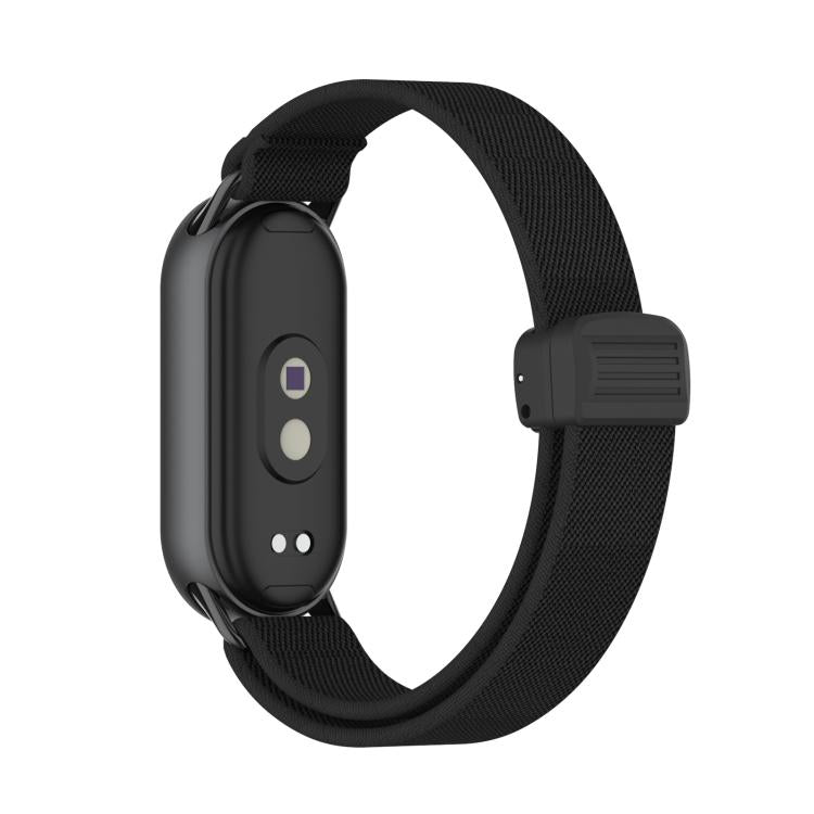 Correa de nailon elástica con hebilla magnética de plástico y cabeza de metal para Xiaomi Smart Band 10/9/8 (negra)