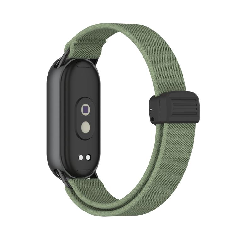 Correa de nailon elástica con hebilla magnética de plástico y cabeza de metal para Xiaomi Smart Band 10/9/8 (verde oscuro)
