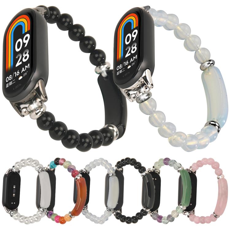 Correa de reloj con cuentas grandes para Xiaomi Smart Band 10/9/8 (cuentas de cuarzo rosa)