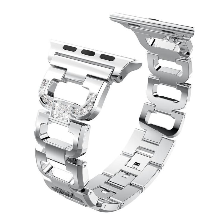 Correa de reloj de aleación de zinc con diamantes cuadrados para Apple Watch de 42 mm, 41 mm, 40 mm y 38 mm (plateada)
