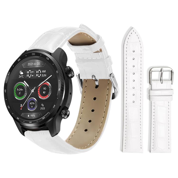 Correa de reloj de cuero con hebilla de pasador y textura de bambú de 22 mm para Ticwatch Pro X / Pro3 / Pro / GTX / E2 xDfind (blanco)