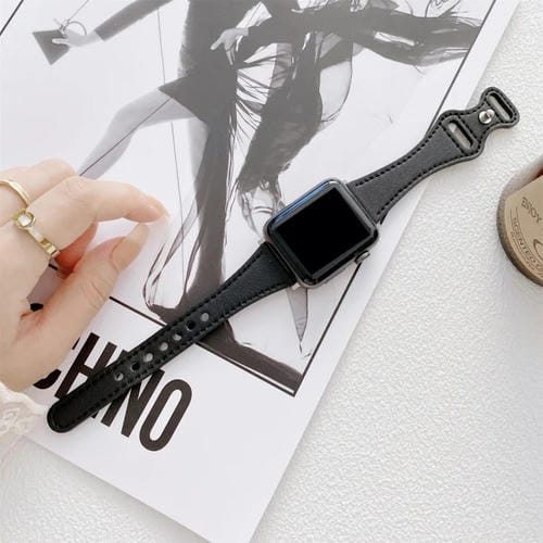 Bracelet de montre en cuir à boucle inversée de petite taille à 8 voies pour Apple Watch Series 8 & 7 41 mm / SE 2 & 6 & SE & 5 & 4 40 mm / 3 & 2 & 1 38 mm (Noir)
