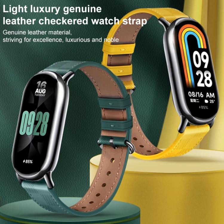Correa de reloj de cuero con textura a cuadros xDfind para Xiaomi Smart Band 10/9/8 (amarilla)