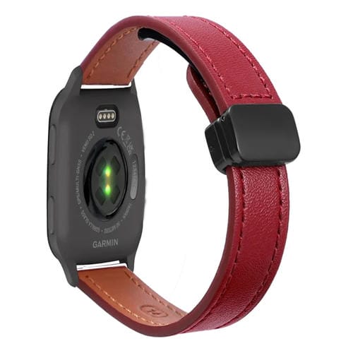 Correa de Reloj Cuero Microfibra con Hebilla Magnética 20mm para Garmin Venu Sq (Rojo Vino)