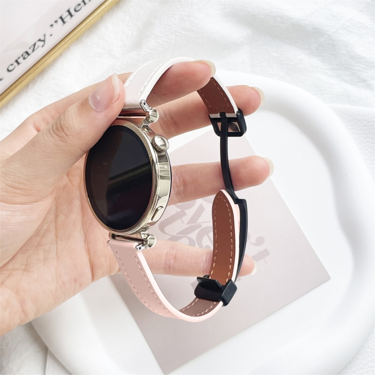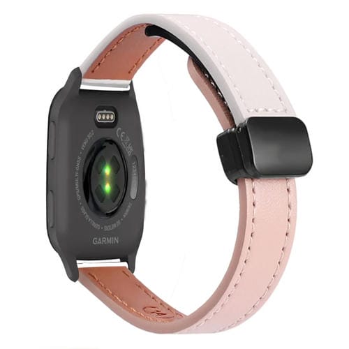 Correa de Reloj Cuero Microfibra con Hebilla Magnética 20mm para Garmin Venu Sq (Rosa y Albaricoque)