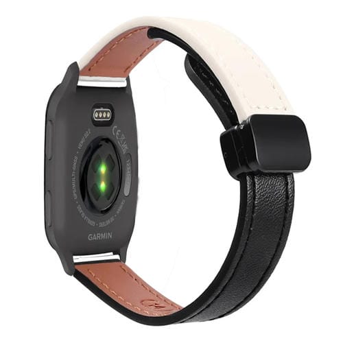 Correa de Reloj Cuero Microfibra Garmin Venu Sq2 20mm Hebilla Magnética (Negro y Albaricoque)