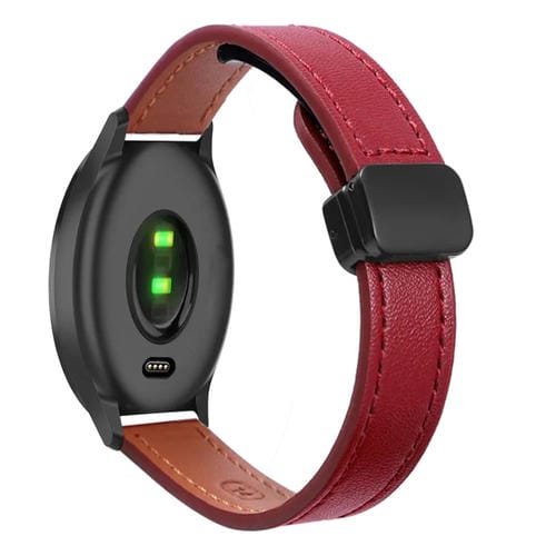 Correa de Reloj Cuero Microfibra 20mm Garmin Vivomove Hebilla Magnética (Rojo Vino)