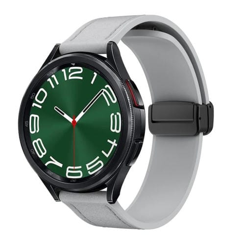 Correa de Reloj de Cuero y Silicona 20mm con Hebilla Magnética Negra (Gris)