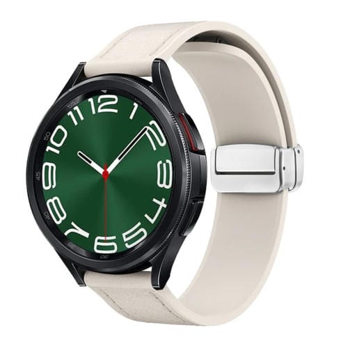 Correa de Reloj de Cuero y Silicona con Hebilla Plateada Magnética 20mm (Luz de Estrella)