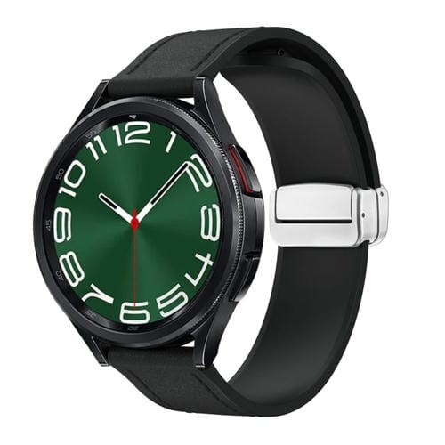 Correa de Reloj Cuero Silicona 20mm con Hebilla Magnética Plateada (Negro)