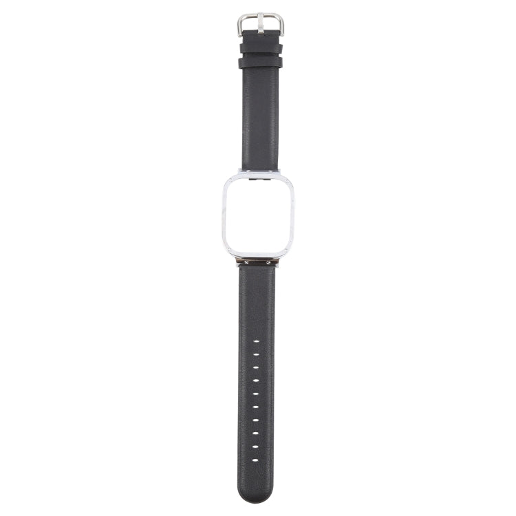 Correa de reloj de cuero genuino integrada con marco de metal para Redmi Watch 3 Lite (negro)