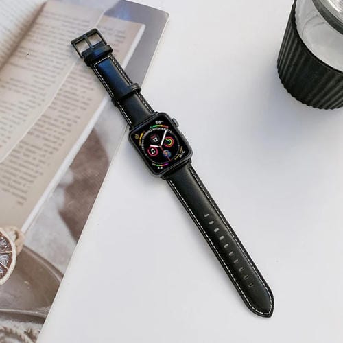 Correa de Reloj Cuero Genuino Apple Watch Series 8 7 41mm y SE 2 6 5 4 3 2 1 38 40mm (Negro)