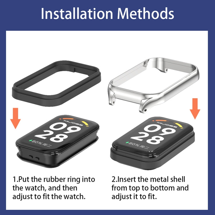 Correa de reloj de cuero sintético de microfibra con carcasa de metal Mijobs para Xiaomi Smart Band 9 Active / Redmi Band 3 (gris plateado)