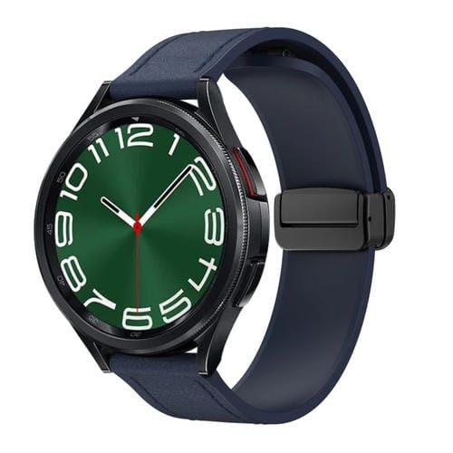 Correa de Reloj Cuero y Silicona 20mm Hebilla Magnética (Azul Medianoche)