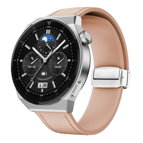 Correa de Reloj de Cuero y Silicona 22mm con Hebilla Magnética (Rosa)