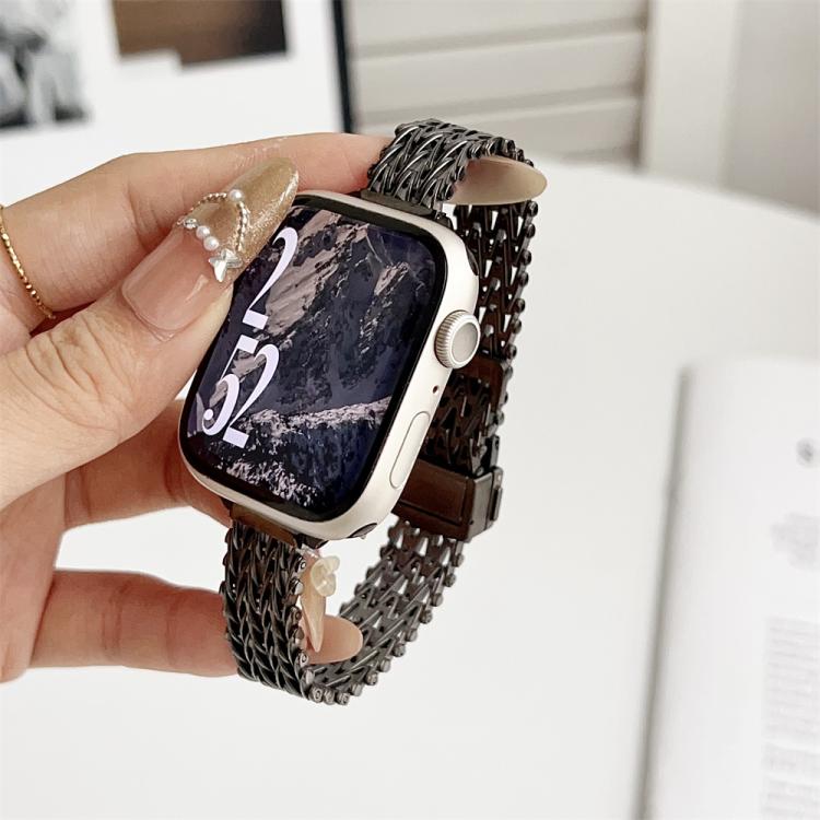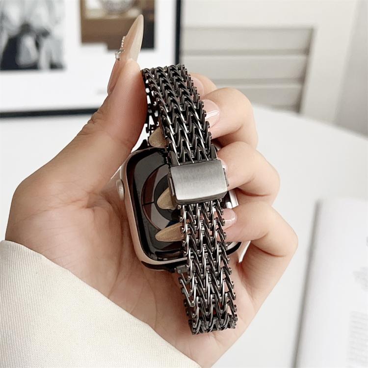 Correa de reloj de malla metálica de acero con cierre magnético delgado para Apple Watch de 46 mm / 49 mm / 45 mm / 44 mm (gris)