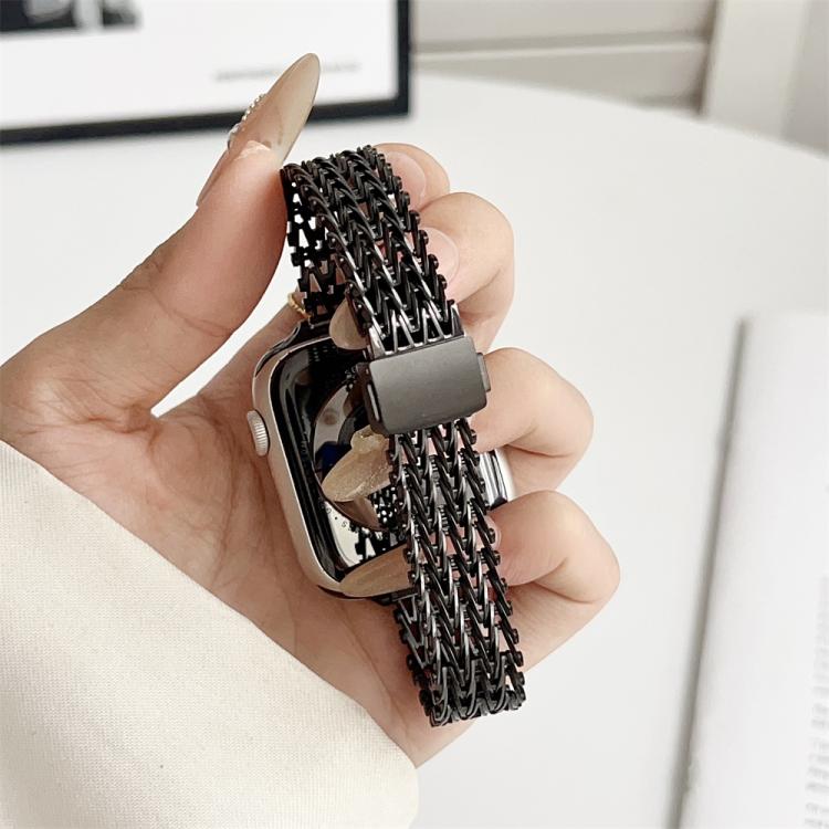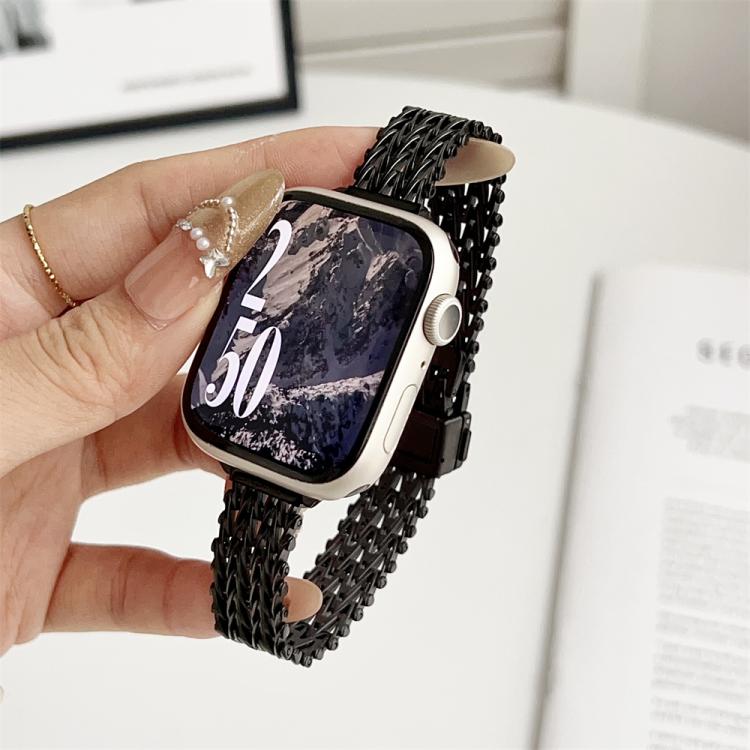 Correa de reloj de malla metálica de acero delgada con cierre magnético para Apple Watch de 42 mm / 41 mm / 40 mm / 38 mm (negra)