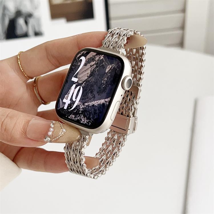 Correa de reloj de malla metálica de acero delgada con cierre magnético para Apple Watch de 42 mm / 41 mm / 40 mm / 38 mm (Starlight)