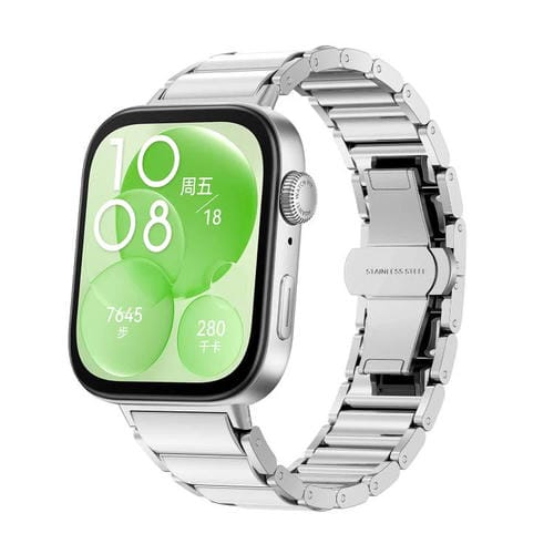 Correa de reloj de metal con hebilla de mariposa blanca de cerámica para Huawei Watch Fit4 / Fit4 Pro / Fit3 (plateada)
