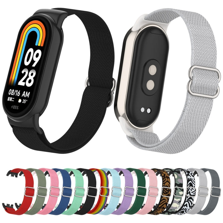 Correa de reloj de nailon elástica lisa con conector de plástico para Xiaomi Smart Band 9/8 (camuflaje jungla)