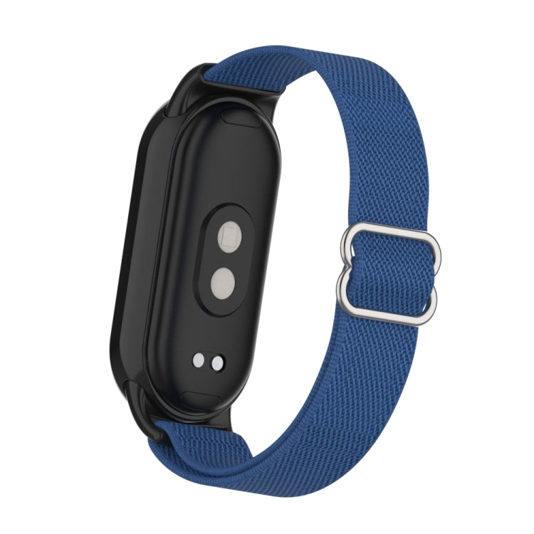 Correa de reloj de nailon elástica lisa con tapón de plástico para Xiaomi Smart Band 9/8 (azul frío)