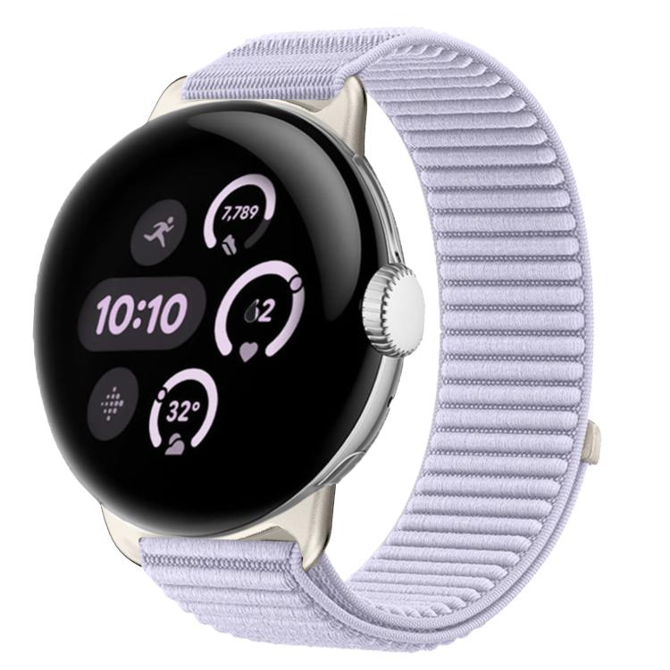 Correa de reloj de nailon tejido de 41 mm con cierre de velcro e interfaz metálica para Google Pixel Watch 4 / 3 / 2 / 1 (morado)