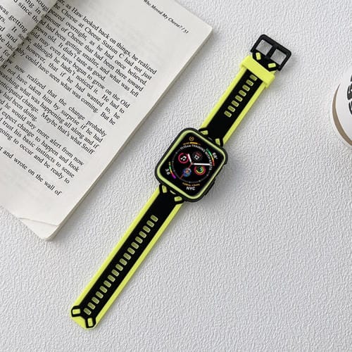 Correa de Reloj TPU para Apple Watch Series 8 y 7 41mm / SE 2, 6, 5, 4 40mm / 3, 2, 1 38mm (Negro Amarillo)