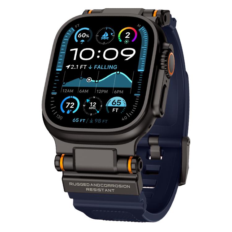 Correa de reloj Kalebol Outdoor Explorer con conector metálico de TPU para Apple Watch de 46 mm, 49 mm, 45 mm y 44 mm (negro y azul)