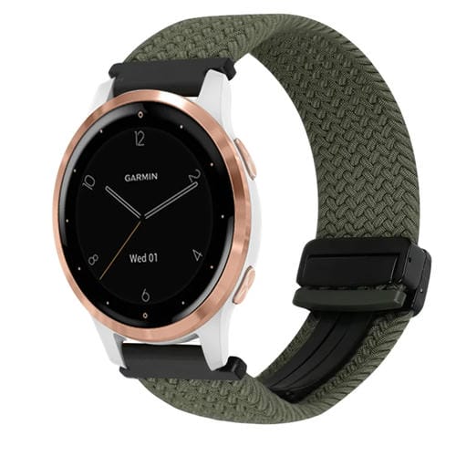 Correa de Reloj Trenzada Garmin Active S 18mm Hebilla Magnética (Verde Oliva)