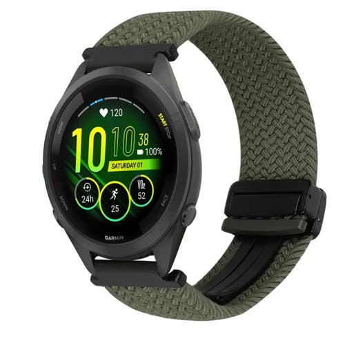 Correa de Reloj Trenzada Garmin Forerunner 265S 18mm con Hebilla Magnética (Verde Oliva)