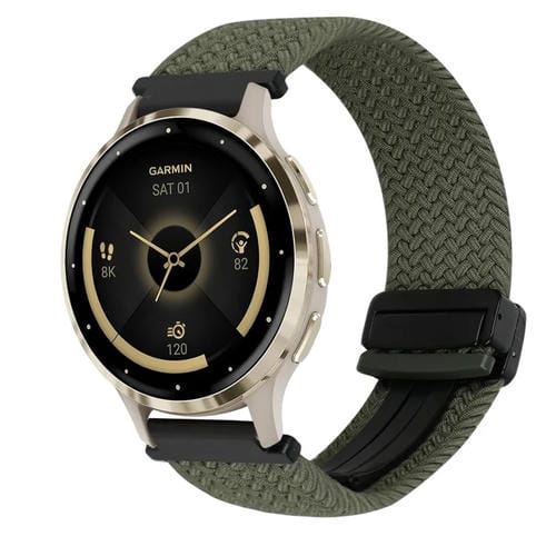 Correa de Reloj Trenzada Garmin Venu 3S 18mm con Hebilla Magnética (Verde Oliva)