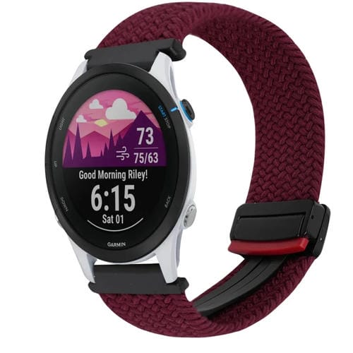 Correa de Reloj Trenzada Garmin Forerunner 255 Music 22mm con Hebilla Magnética (Rojo Vino)