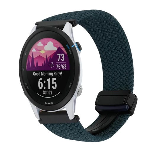 Correa de Reloj Trenzada Garmin Forerunner 255 22mm Hebilla Magnética (Verde Bosque)