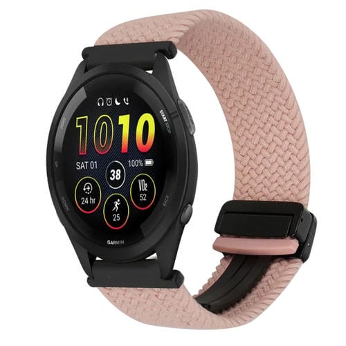 Correa de Reloj Trenzada Garmin Forerunner 265 Music 22mm con Hebilla Magnética (Rosa)