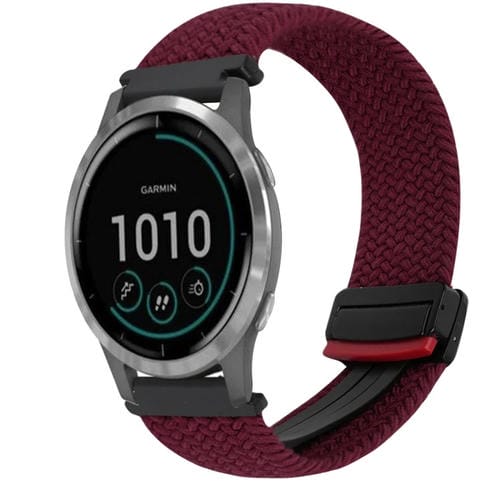 Correa de Reloj Trenzada Garmin Vivoactive 4 22mm con Hebilla Magnética (Rojo Vino)