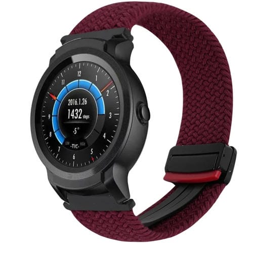 Correa de Reloj Trenzada Ticwatch E2 22mm Hebilla Magnética (Rojo Vino)