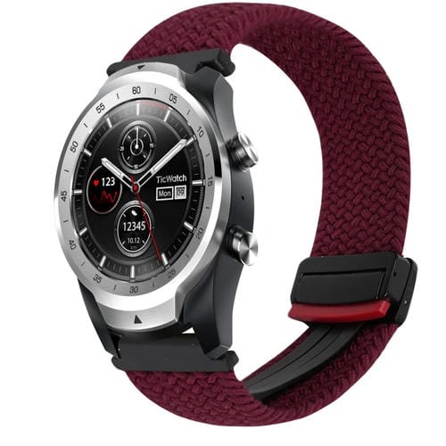 Correa de Reloj Trenzada con Hebilla Magnética 22mm para Ticwatch Pro 2020 (Rojo Vino)