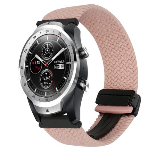 Correa de Reloj Trenzada con Hebilla Magnética 22mm para Ticwatch Pro 2020 (Rosa)